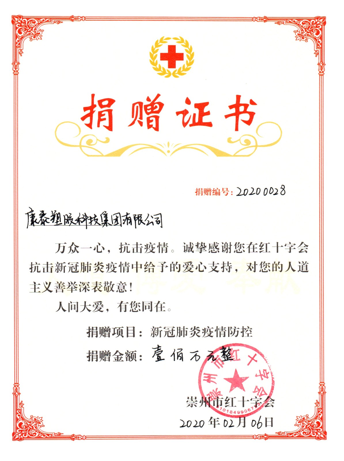 責(zé)任擔(dān)當(dāng),綿薄之力??堤┘瘓F支持國家蛟龍?zhí)柹顫摷舛耸聵I(yè)成為戰(zhàn)略合作伙伴、塑膠管材首選產(chǎn)品,將國家尖端科技夢與康泰實業(yè)興邦夢融合發(fā)展;積極參與社會責(zé)任,先后向“5.12汶川大地震”、“4?20雅震”、“崇州老年協(xié)會”、“老年事業(yè)發(fā)展基金”、“殘疾人學(xué)?!本杩钤?。成立“康泰員工扶助基金”,長期堅持扶貧幫困公益事業(yè)。