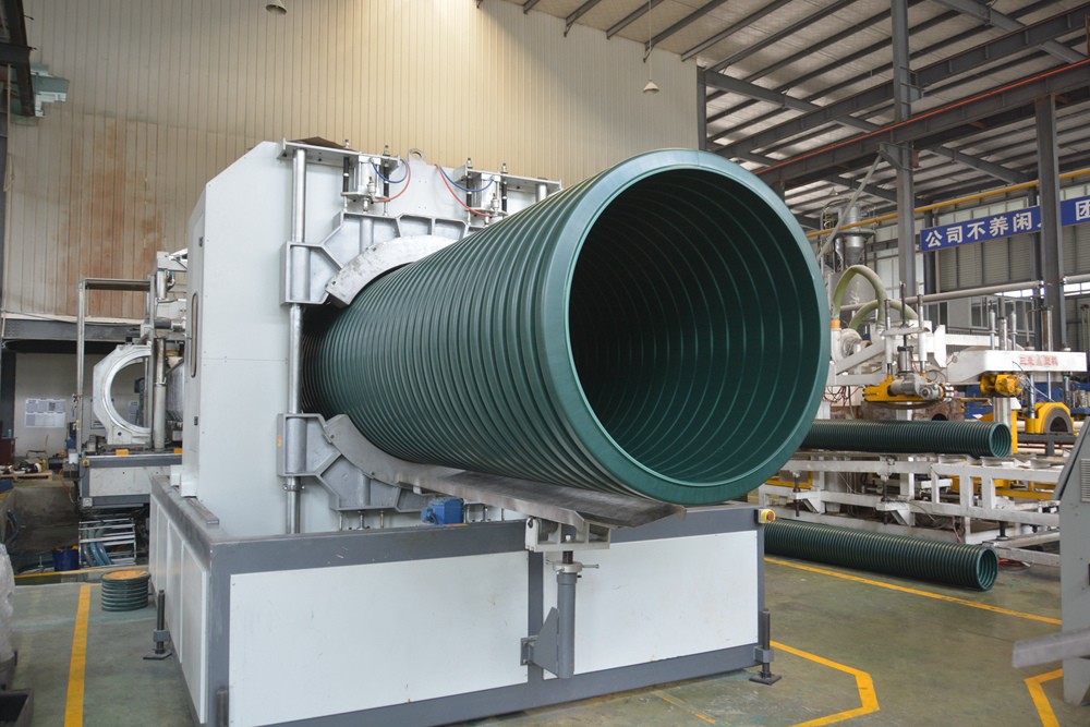 在康泰塑膠的產(chǎn)品展示廳,首先映入眼簾的是一根高約80厘米、直徑約20厘米、壁厚約2厘米的綠色波紋管道。由康泰塑膠研發(fā)團(tuán)隊(duì)獨(dú)立研發(fā),填補(bǔ)了國際國內(nèi)的空白,引發(fā)了塑料管道行業(yè)的一次革命。這就是是公司研發(fā)出的首款產(chǎn)品——MPVE?波紋管材。
