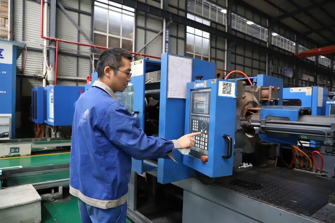 在康泰的PVC管件車間內(nèi),員工楊進(jìn)福正進(jìn)行日常的貨物抽檢和機(jī)器設(shè)備調(diào)試?!耙?yàn)榈侥甑琢?,有許多前期訂單要完成,還要滿足公司每年的生產(chǎn)計(jì)劃,所以這段時(shí)間我們都比較忙,人和機(jī)器都在不停工作?!睏钸M(jìn)福說。