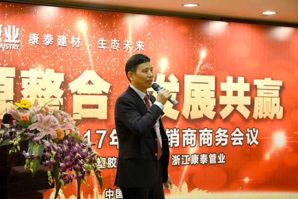 ? ? ? ?林總裁在講話中圍繞2025智能制造、智能化的不斷發(fā)展,以及傳統(tǒng)制造企業(yè)面臨的挑戰(zhàn)等話題,從中國經濟新常態(tài)和轉型升級的大背景、大環(huán)境,重點回顧了康泰集團2016年的取得的成績、涌現的亮點,總結分析了經銷商存在的不足。林總裁表示,2016年度,在市場需求量下滑的情況下,康泰集團準確清晰的實施穩(wěn)定民建、發(fā)展市政等舉措,積極應對市場挑戰(zhàn)與洗牌,全年基本完成經營目標。為穩(wěn)定民建、發(fā)展市政,資源儲備等后續(xù)發(fā)展打下了良好基礎。林總裁強調,雖然我們取得了一些成績,但也要認識到自身存在的不足。比如,母子公司資源共享、業(yè)務挖掘、做寬做深不夠、產品質量細節(jié)提升與保障不足、產品研發(fā)的市場化應用性不足、經銷商思維轉型等問題都需要引起重視。2017 是機遇與挑戰(zhàn)并存的一年,也是大有可為的一年。本次會議不僅進一步向全體經銷商傳遞了康泰集團的戰(zhàn)略和營銷方針,而且也為大家來年的發(fā)展明確了目標,指明了方向。