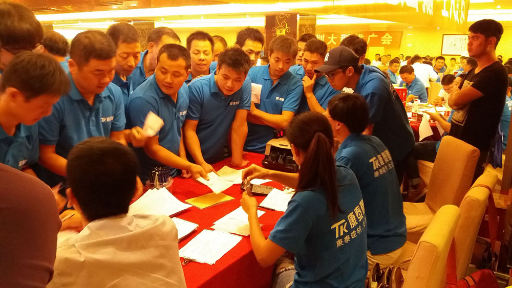 ? ? ??下午4時,會議在湖州皇冠大酒店正式開始。會上,湖州物流中心總經(jīng)理管俊華首先致辭,對廣大水電工的到來表示了熱烈的歡迎;集團(tuán)市場總監(jiān)鄭光鏵就“錦程計(jì)劃”的內(nèi)容和目的進(jìn)行了闡述,并強(qiáng)調(diào)了集團(tuán)公司對計(jì)劃的支持和配合;浙江基地家裝部總監(jiān)王兵則結(jié)合PPT對公司產(chǎn)品進(jìn)行了詳細(xì)的介紹;集團(tuán)營銷顧問王楨對“錦程計(jì)劃”的政策作了講解。會議還邀請水電工進(jìn)行了焊接技術(shù)展示。? ? ? ?“浙江康泰千萬水工錦程計(jì)劃”旨在傳播“廠家與服務(wù)商都給你打工,輔助你當(dāng)老板,改變你的人生”的營銷理念,讓更多的水電工加入到“千萬水工錦程計(jì)劃”中來。通過前兩場會議的宣傳和造勢,“錦程計(jì)劃”已經(jīng)越來越被廣大水電工認(rèn)同和接受。隨著優(yōu)惠政策的不斷推出,參會水電工都對計(jì)劃表示出了十足的興趣,會議現(xiàn)場熱情火爆,激情澎湃,過半人數(shù)進(jìn)行了現(xiàn)場簽單。