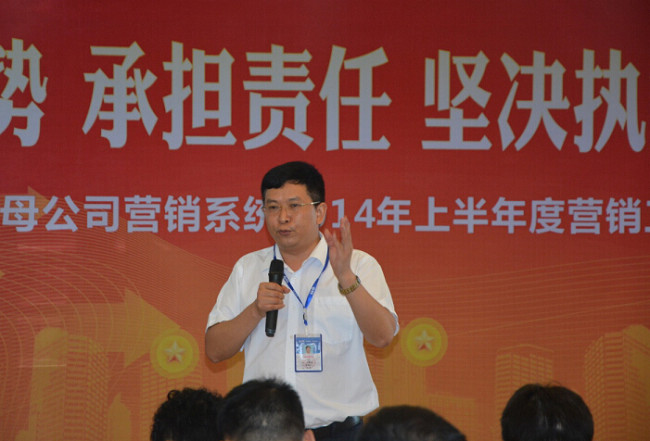 ? ? ? 7月11日8:20,母公司營銷系統(tǒng)全員個個精神飽滿、神采奕奕,在高亢激昂的《康泰之歌》中開啟全天總結(jié)匯報會議,成都、四川、重慶、云南、西安商務(wù)部、網(wǎng)絡(luò)部、市政部、家裝事業(yè)部、型材事業(yè)部、大客戶部十個團(tuán)隊,分別就2014年上半年度工作總結(jié)、下半年度工作規(guī)劃作出匯報。最后由營銷中心何朝暉總監(jiān)作營銷中心上半年度總結(jié)、下半年度形勢分析和工作規(guī)劃部署,何總首先對各團(tuán)隊負(fù)責(zé)人的工作匯報和規(guī)劃作一對一的詳細(xì)點(diǎn)評和指導(dǎo),并在總結(jié)中說道:“上半年營銷中心全員團(tuán)結(jié)一致、全力以赴,完成了上半年度的目標(biāo),可喜可賀。但要清醒看到房地產(chǎn)市場重大拐點(diǎn)的嚴(yán)峻形勢,完成下半年銷量指標(biāo)充滿挑戰(zhàn),要求營銷系統(tǒng)全員統(tǒng)一思想,堅定以認(rèn)清形勢、承擔(dān)責(zé)任、堅決執(zhí)行、挑戰(zhàn)發(fā)展的思路,將每項工作落到實處,奮力拼搏爭取圓滿完成下半年經(jīng)營指標(biāo)” 。