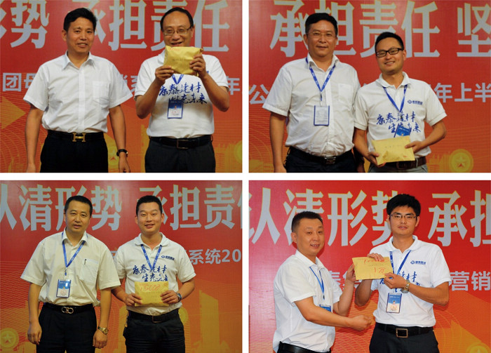 ? ? ? 會議最后,集團(tuán)公司林總裁就本次“認(rèn)清形勢、承擔(dān)責(zé)任、堅決執(zhí)行、挑戰(zhàn)發(fā)展”半年度營銷總結(jié)表彰大會作全面總結(jié)、鼓勵與動員。林總裁首先肯定和贊揚(yáng)了此次營銷人員會議期間的良好表現(xiàn),對全體會議籌備人員的工作表示感謝,對獲得表彰的團(tuán)隊、個人致以熱烈的祝賀!
