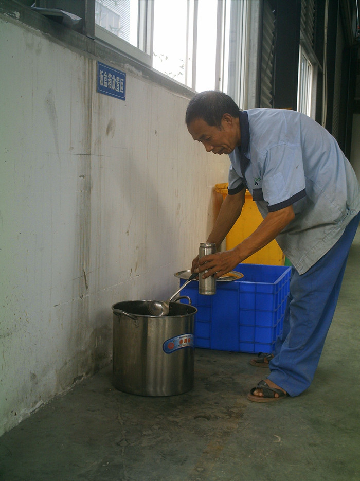 ??? 炎炎夏日,辛勤的員工們依舊堅(jiān)守在工作崗位。這時(shí),一杯綠豆湯能為他們清熱消暑,解除高溫帶給身體的疲憊。2013年8月22日,在管件車間,記者見(jiàn)到員工鄧火全正在舀綠豆湯,并向他了解夏季公司為員工準(zhǔn)備綠豆湯的具體情況。