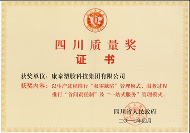 康泰塑膠科技集團(tuán)榮獲第四屆“四川質(zhì)量獎(jiǎng)”