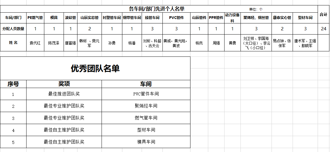 圖為最佳自主維護團隊、最佳專業(yè)維護團隊