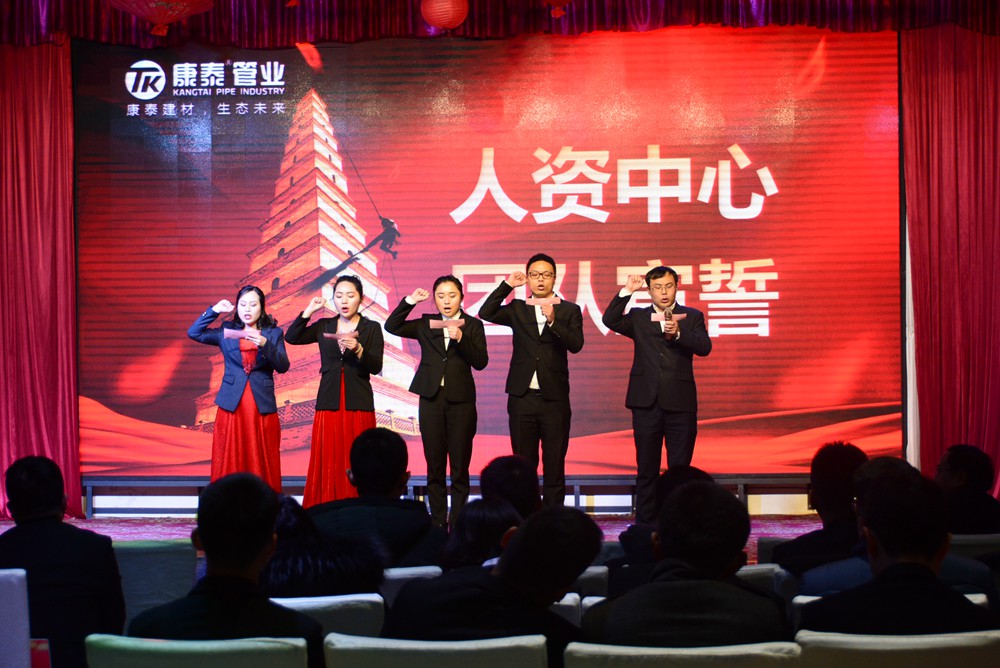 13時(shí)許,會(huì)議在雄壯嘹亮的《國(guó)歌》和《康泰之歌》中正式啟幕。大會(huì)共有五項(xiàng)議程分別是,對(duì)2018年的工作總結(jié)暨2019年度經(jīng)營(yíng)規(guī)劃、表彰2018年度先進(jìn)個(gè)人和集體、舉行迎春文藝匯演、母公司各中心宣誓、聽取董事長(zhǎng)對(duì)2019年的總體規(guī)劃和展望。