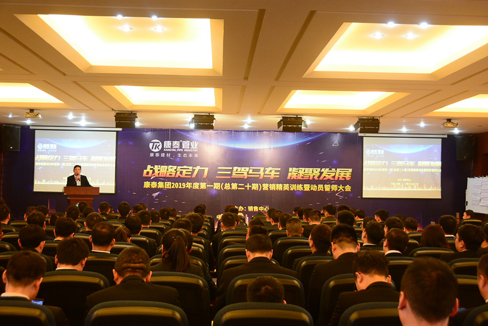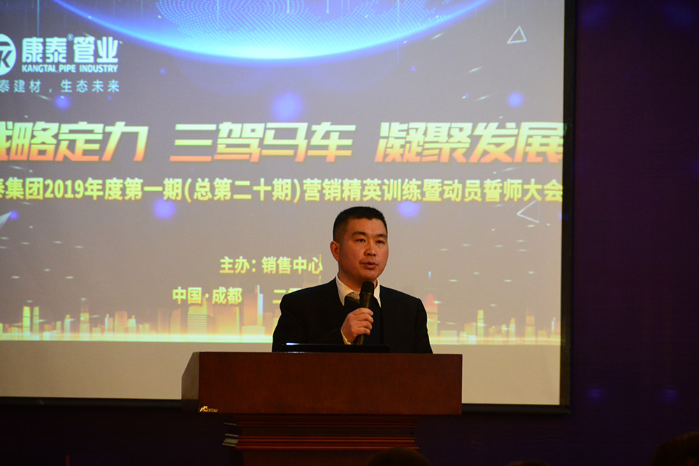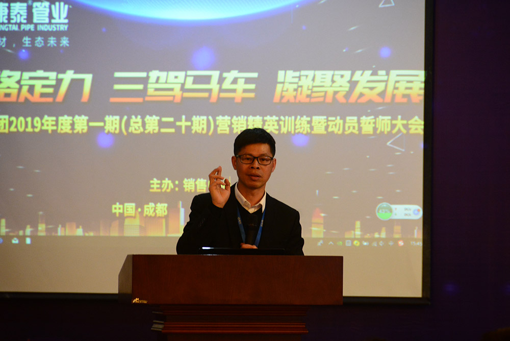 在全場熱烈的掌聲中,林總裁上臺作了熱情洋溢的新年致辭和動員講話。林總裁首先對集團公司在2018年取得的優(yōu)異業(yè)績向全體銷售人員的付出表示了感謝。林總裁表示,康泰的發(fā)展定位就是做中國工程集采第一供應商,2019年是充滿挑戰(zhàn)的一年,也是為實現(xiàn)三年目標打基礎(chǔ)的一年。我們要充分發(fā)揮三駕馬車——發(fā)展民建、發(fā)展網(wǎng)絡(luò)、發(fā)展市政的優(yōu)勢,切實做到品牌強大、技術(shù)強大、網(wǎng)絡(luò)強大、團隊強大,提升公司的核心競爭力。