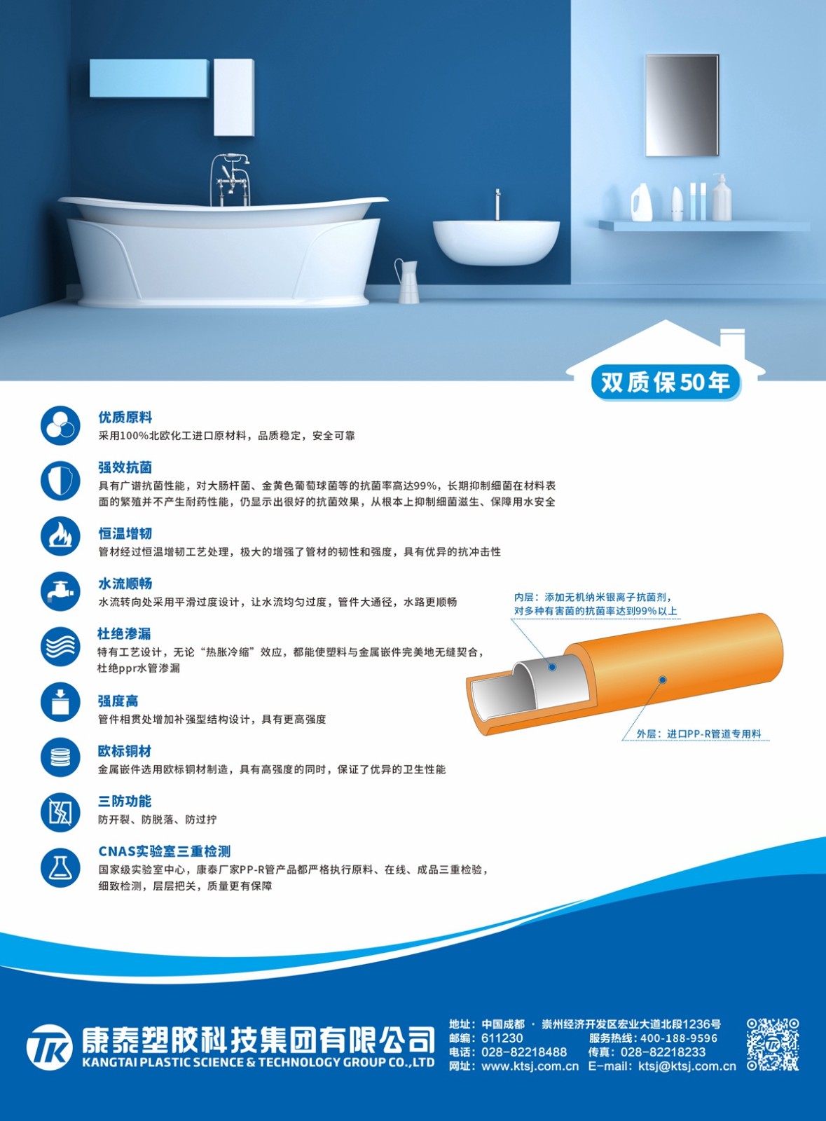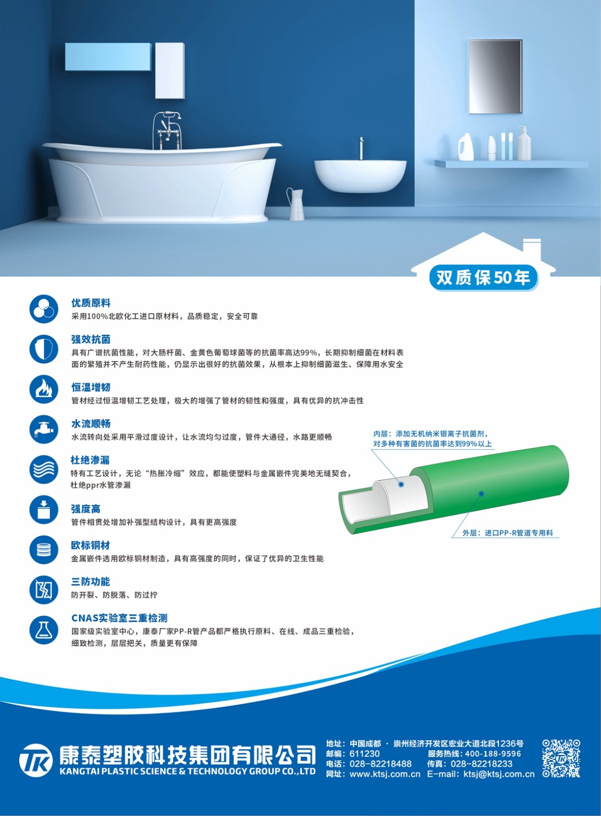 康泰PPR瓷芯抗菌管與國際頂級(jí)原材料供應(yīng)商北歐化??期合作,100%北歐化?進(jìn)?原材 料,從源頭上確保產(chǎn)品質(zhì)量,確保家庭??的安全健康。