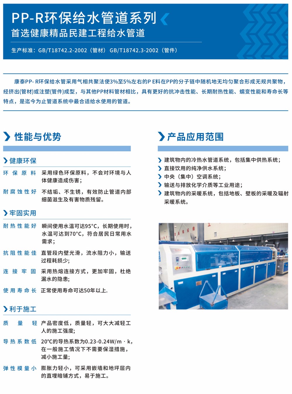 生產(chǎn)標準:GB/T18742.2-2002管材 GB/T18742.3-2002管件