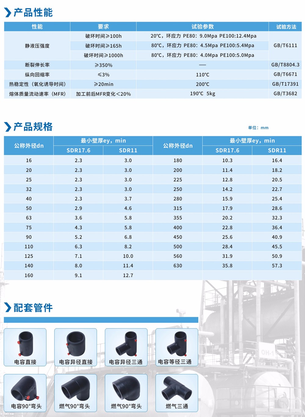 生產(chǎn)標(biāo)準(zhǔn):GB15558.1-2003(管材) GB15558.2-2005(管件)